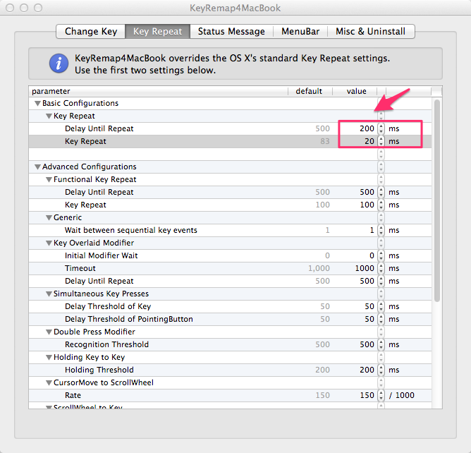 Delay Until Repeat : 500 -> 200